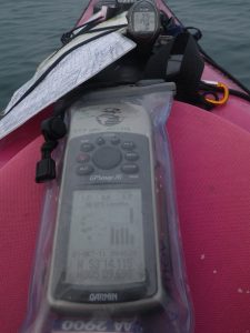 I settled into a well practiced routine now – 55 minutes on and 5 minutes off (or so) with a drink on the 30 minute mark, aiming for 500ml of fluid per hour. The Coastguard had requested a position update every hour too. With the routine the 4 minutes off soon passes by and it’s a bit tight to get all the admin done. But the off-time needs to be kept to a minimum; if you take 5 minute breaks and add them all up for a 12 hr crossing it totals nearly an hour of non-paddling. That’s not a great drama on a straightforward crossing but when you are aiming to sneak under a tight record time all those lost minutes become significant.